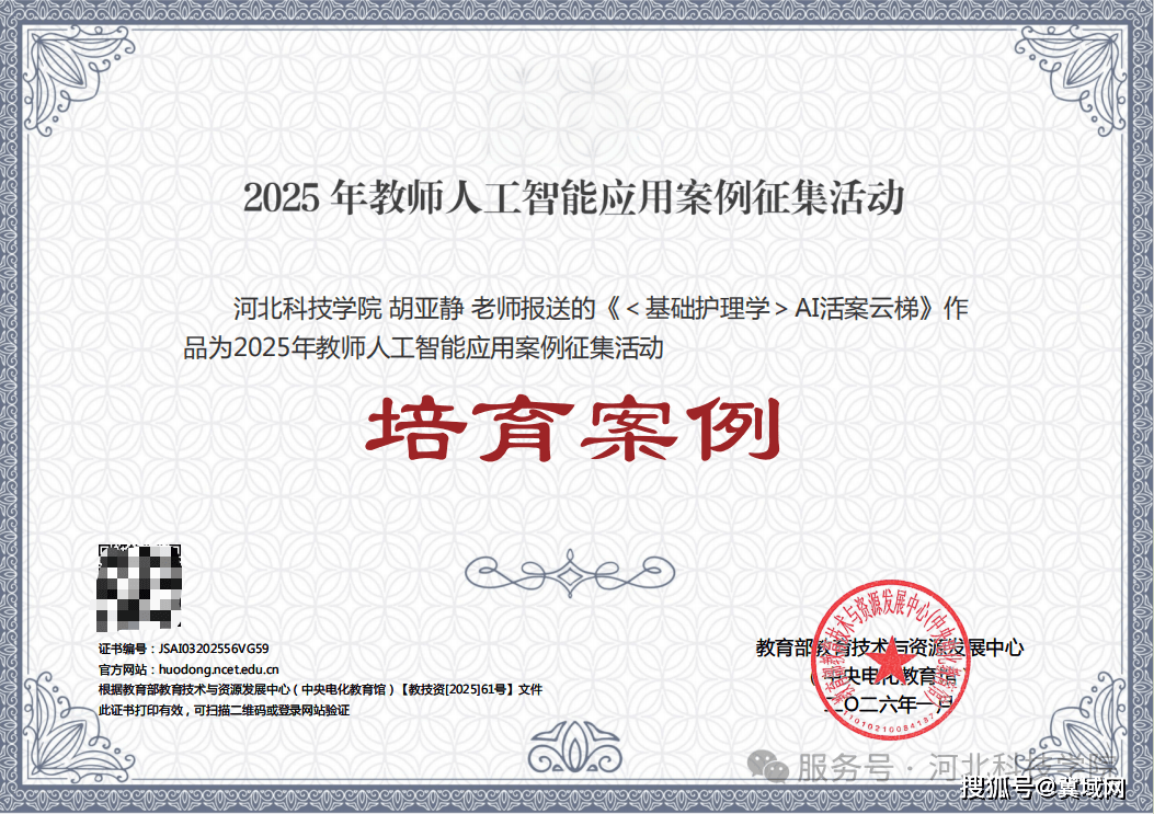 科技学院紧扣国度教育数字化计谋,是胡亚静传授深耕讲授的,科技学院胡亚静传授的《〈根本护理学〉AI活案云梯》成功入围国度级保举案例,