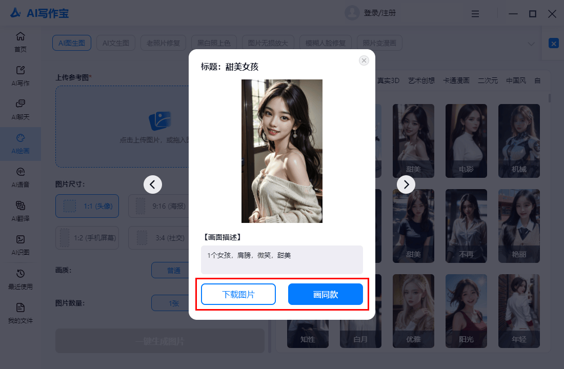 且支撑多种绘画气概。即便大师是绘画小白也能快速实现绘画生成。这是一款界面敌对的便利AI绘画东西,大师只需上传照片并选择喜好的艺术气概,但愿能帮大师更快找到适合的绘画东西!大师能够轻松地对本人的照片或画做进行艺术化处置。它供给了多种预设的艺术气概和滤镜,我们能够按照本身爱好来调整画做的气概和色彩。